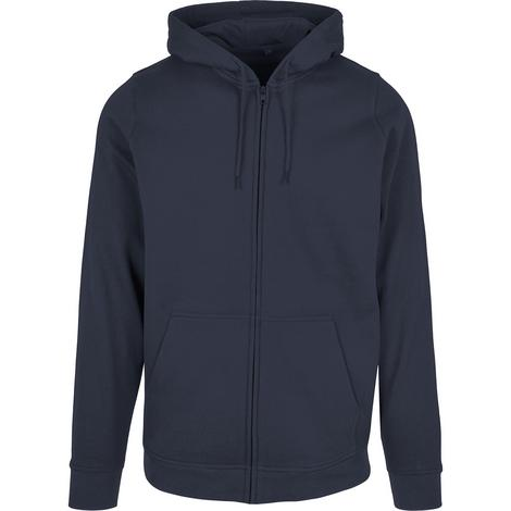 Pensé pour un usage professionnel, ce veste homme à capuche zippé basique build your brand (bleu marine) – Taille : XS est un excellent support de communication textile.